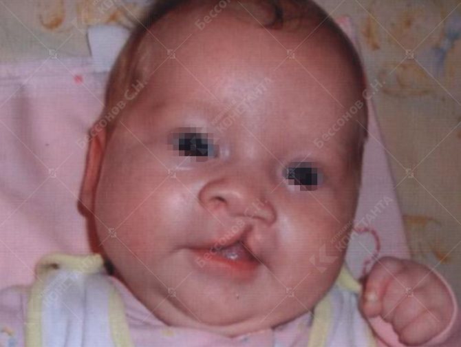 Кроме видимого нарушения целостности неба и губы, волчья пасть сопровождается следующими симптомами: