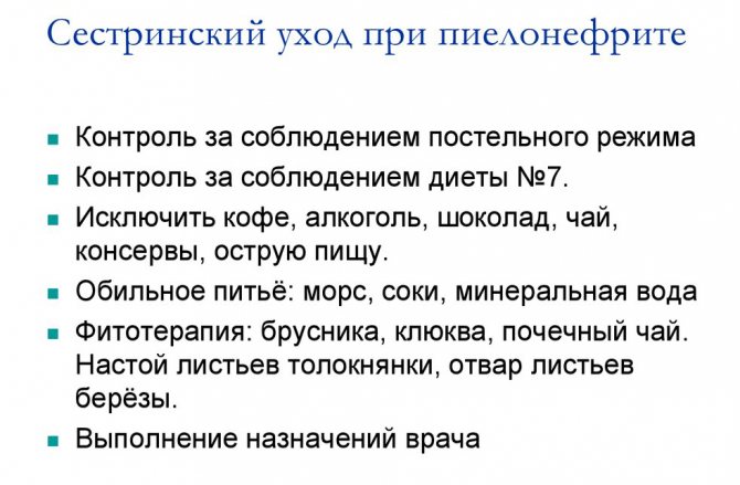 Сестринский уход при остром пиелонефрите предполагает поддержку режима, который врач назначил для пациента с учетом тяжести его состояния.